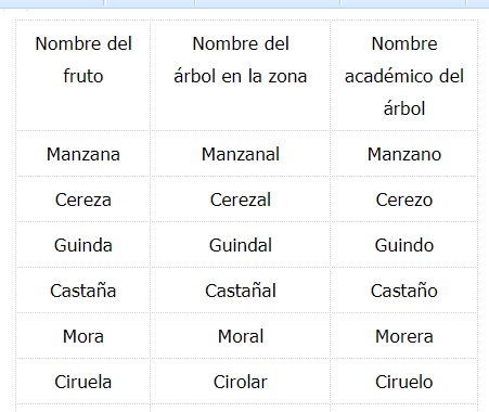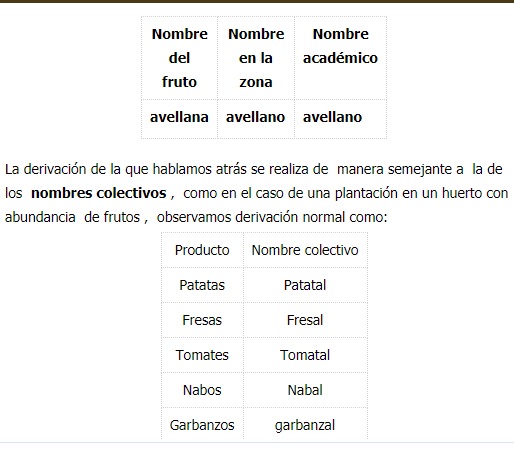 Sin embargo se observa que cuando el árbol frutal no es autóctono o habitual de la zona y que se introdujo procedente de otras , posiblemente en fecha tardía, se sigue la norma general de derivación del lugar de procedencia., caso del avellano.